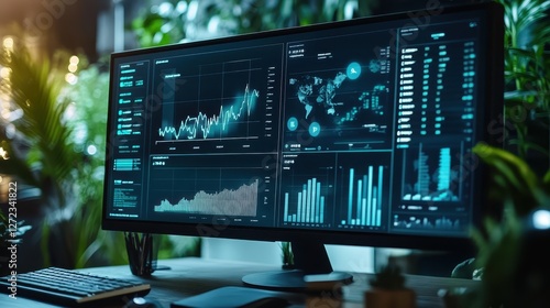 inventory system in collaborative setup, bright ambient light, with chart icons