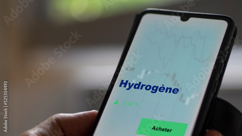 Investir dans un fonds etf hydrogène actions en bourse sur un écran. Graphique, courbes, chandelles d'ETF.