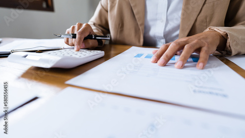 Investor calculating profits on stock market exchange.Investment planing and strategy concept, Financial data analysis graph business.