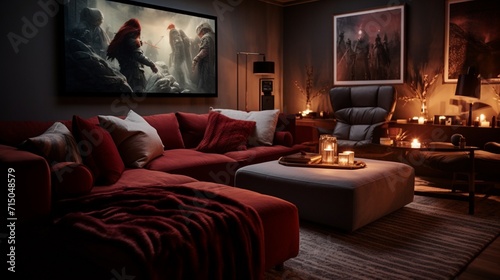 Inviting Scandinavian Cinema Room with Layered Textiles and Comfortable Seating - AI-Generative