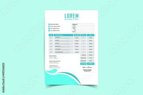 Invoice Template Design. Luxury, Modern, Elegant, Professional, Minimalist, Business, Abstract, Modern Multicolor Invoice Design. Vector Illustration