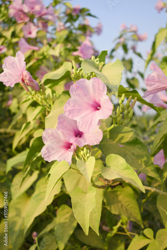 Ipomoea carnea, Ipomoea carnea, the pink morning glory is a species of morning glory that grows as a bush, A close view of Ipomoea carnea flower in nature, Chakwal, Punjab, Pakistan