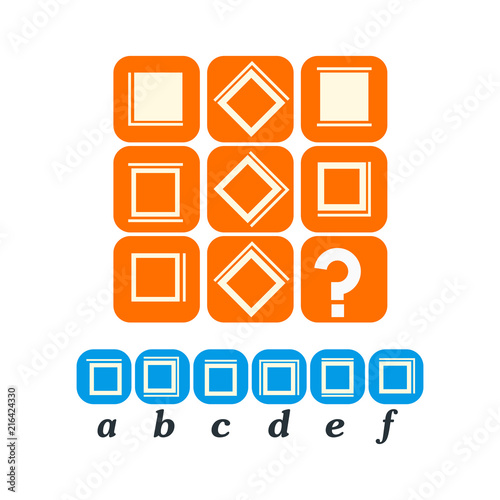 IQ test. Choose correct answer. Logical task, educational game for kids. development of logic, iq. Task game what comes next, Vector illustration