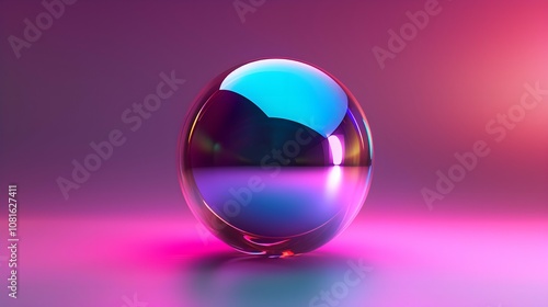 Iridescent balloon bubble on pastel background with gradient. A vibrant and whimsical bubble of joy radiates in the sky, its radiant rainbow background captivating the viewer with its dazzling colors