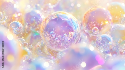 Iridescent bubbles, pastel colors, abstract background.