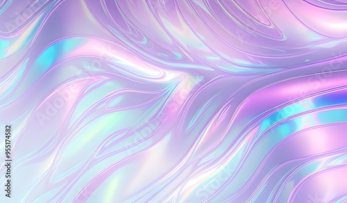 Iridescent chrome wavy gradient cloth fabric abstract background, ultraviolet holographic foil texture, liquid surface, ripples, metallic reflection. 3d render illustration.