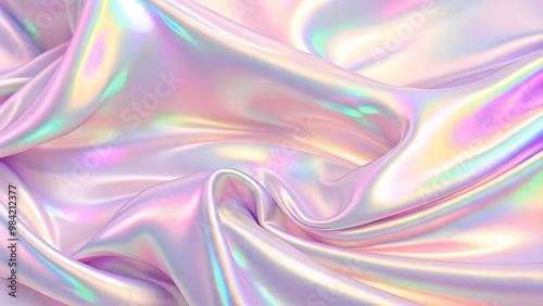 Iridescent chrome wavy gradient cloth fabric abstract background, ultraviolet holographic texture. 3d render, abstract background. Three-dimensional abstract design background.