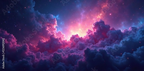 Iridescent clouds of gas in the cosmos with stars, nebulas, stellar nurseries, stardust
