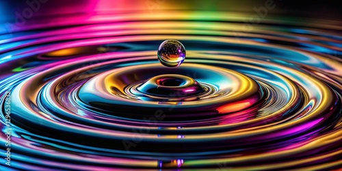 Iridescent Concentric Ripples: Abstract Surreal Black Background Stock Photo