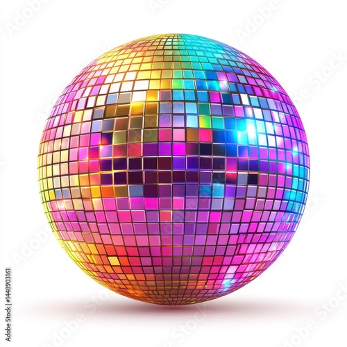 Iridescent Disco Ball Sparkling with Reflected Light for Nightlife Celebration and Party Decoration on White Background