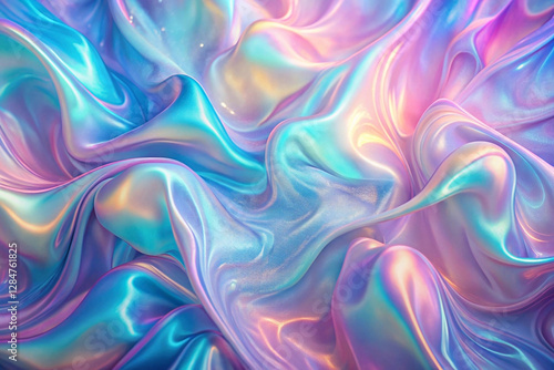 Iridescent fabric swirls, pastel background, abstract art, textile design