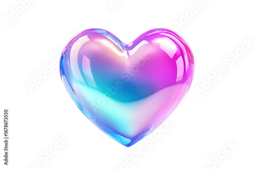 Iridescent heart shape isolated on transparent background. Heart featuring pastel gradient colors in blue pink and purple isolated on white background.