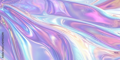 Iridescent Holographic Shiny Background with Wavy Patterns and Soft Pastel Colors for Creative Projects and Design Needs