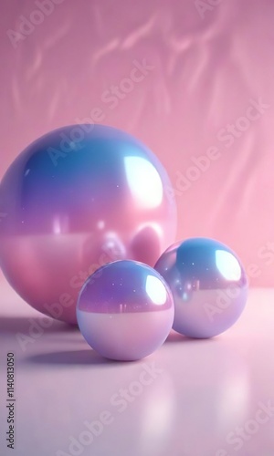Iridescent orbs in a soft pink and blue gradient, muted, intricate