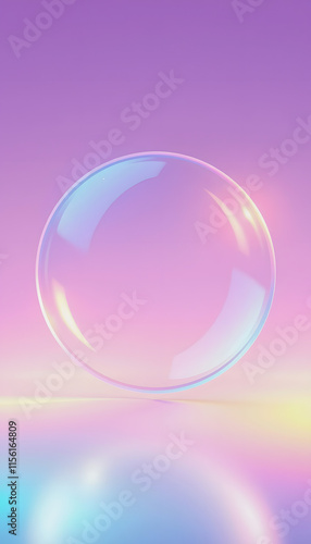 Iridescent Soap Bubble on Gradient Pink and Blue Background