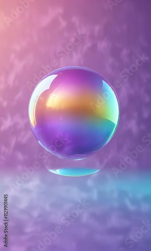 Iridescent sphere suspended in air on gradient background, shimmering, otherworldly, colorful