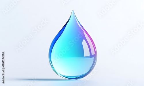 Iridescent water drop studio shot, clean background, purity concept
