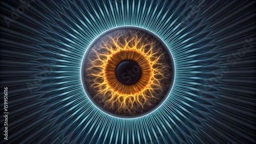 Iris‑scan macro pattern glowing on metallic radial texture