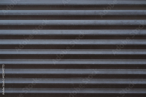 Iron automatic blinds, roller shutters close-up, outside. Textured back