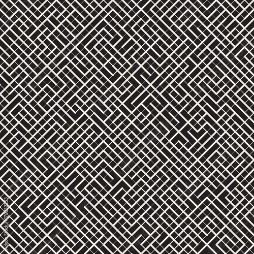 Irregular Maze Lines. Abstract Geometric Background Design. Vector Seamless Black and White Chaotic Pattern.