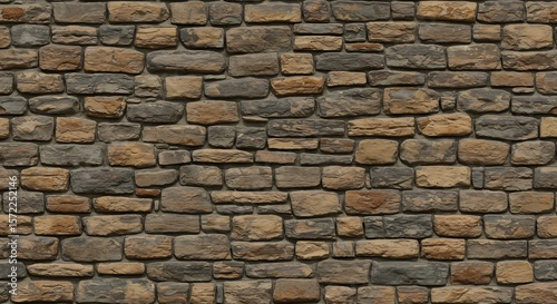 Irregularly shaped multitoned stone wall with tightly fitted blocks and visible mortar lines