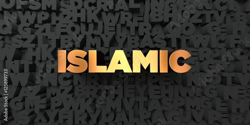 Islamic - Gold text on black background - 3D rendered royalty free stock picture. This image can be used for an online website banner ad or a print postcard.