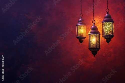 Islamic ramadan kareem celebration lantern with beautiful bokeh lights in the background.