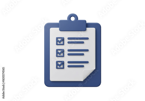 Isolated 3D Clipboard with a Completed Checklist or Survey