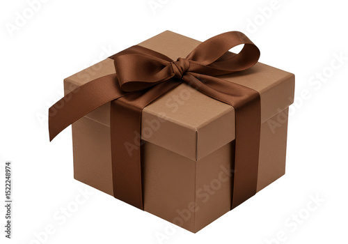 Isolated 3D Image of Brown Gift Box with Ribbon on Transparent Background