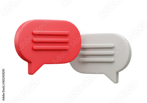 Isolated 3D Red and Grey Speech Bubbles for Dialogue and Communication