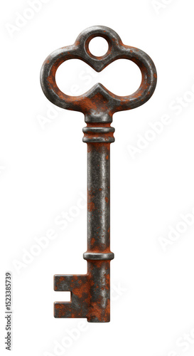 Isolated 3d Rendering of Antique Rusty Iron Metal Skeleton Key Transparent