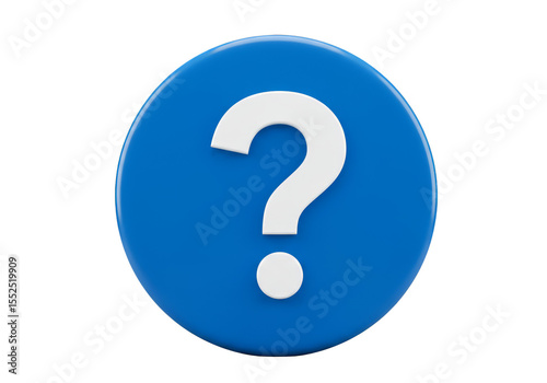 Isolated 3D Rendering of Blue Question Mark Round Sign and Symbol