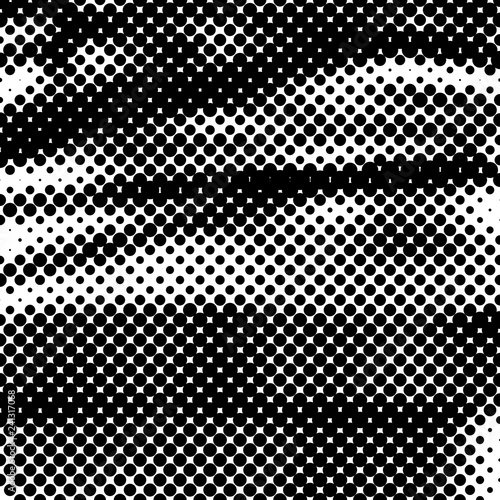 Isolated abstract halftone shapes. Retro black and white background. Grunge texture.