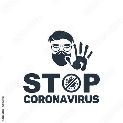 isolated abstract stop coronavirus icon, on white background, covid - 19