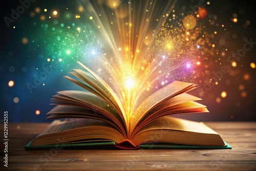 Isolated, an open book's magical glow casts enchanting light, promising fantastical education within.
