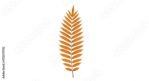 Isolated autumn rowan leaf of reddish-brown color, autumnal foliage, cut out seasonal object