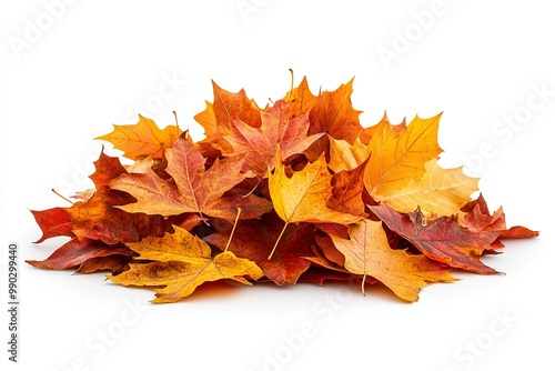 Isolated autumn-colored leaf pile on a white backdrop. Generative Ai