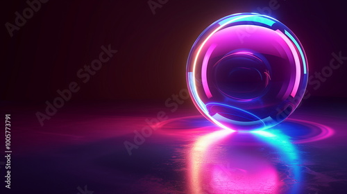 isolated ball with neon light, 3d modern background and wallpaper