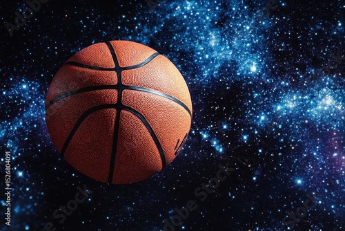 Isolated basketball floating gracefully in a vibrant starry universe backdrop, Isolated basketball against a starry universe backdrop