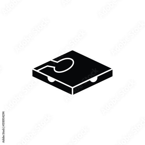 Isolated Black and White Pizza Box Icon, Closed Delivery Container in Isometric