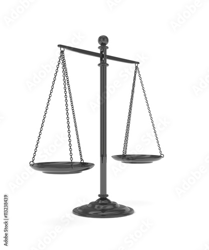 Isolated black scales on white background. Symbol of judgement. Law, measurement, liberty in one concept. 3D rendering.