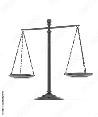 Isolated black scales on white background. Symbol of judgement. Law, measurement, liberty in one concept. 3D rendering.