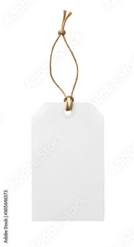 Isolated Blank White Tag With Rope Isolated On Black Background Photo