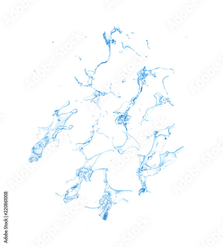 Isolated blue splash of water splashing on a white background. 3d illustration, 3d rendering.