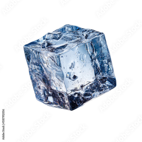 Isolated Clear Ice Cube On White Background, Perfect For Drinks