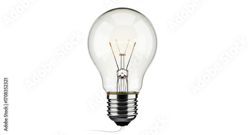 Isolated clear light bulb incandescent with visible filament energy saving concept symbol