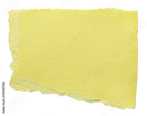 Isolated cut out torn piece of blank yellow paper note cardboard with rough texture and copy space for text, transparent png background design element