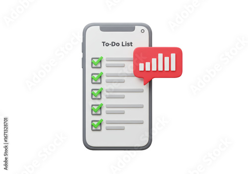 Isolated digital task list, completed to-do checklist, project success, finished task