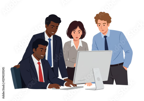 Isolated Diverse Business Team Collaborating on a Computer Screen