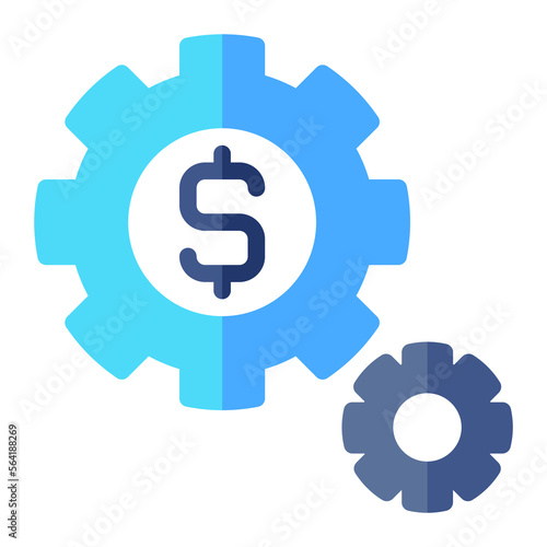 Isolated gear with dollar symbol in flat icon on white background. Setup, configuration, cogwheel, finance, banking